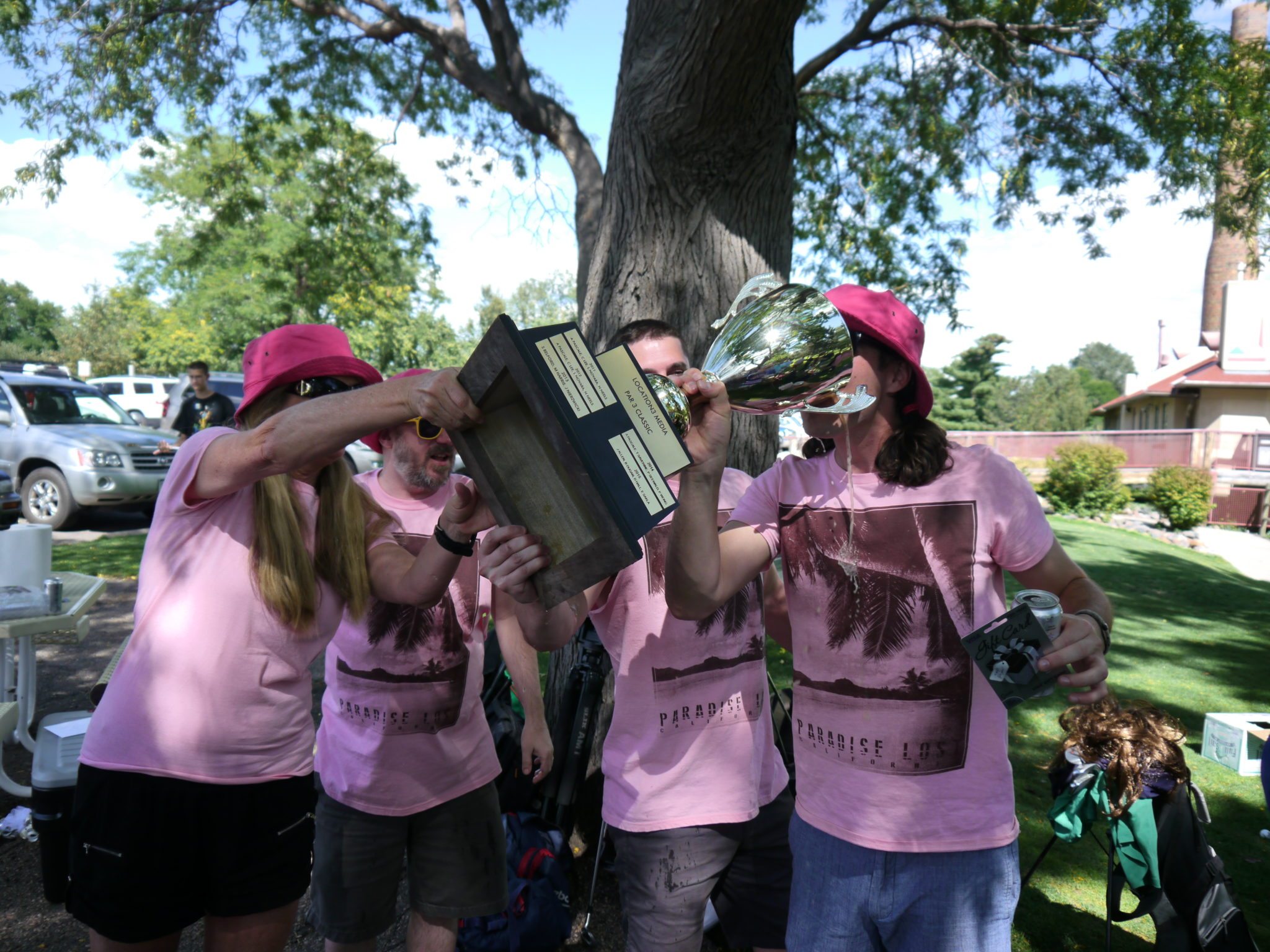 In the end, only one foursome could take the ceremonial drink from the cup. At one-under par, the Fighting Flamingos took home the seventh annual Golf Day Championship. Not far behind were the Human Solar Eclipse and Famous Athletes at even-par.